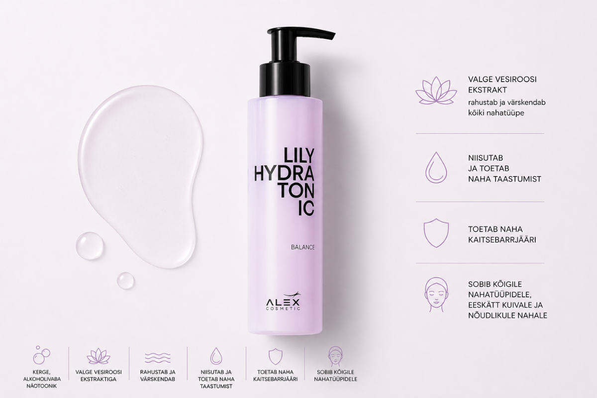 Lily Hydra Tonic on niisutav ja rahustav toonik kuivale ja tundlikule nahale, mis kannatab pinguloleku ja niiskuspuuduse all.